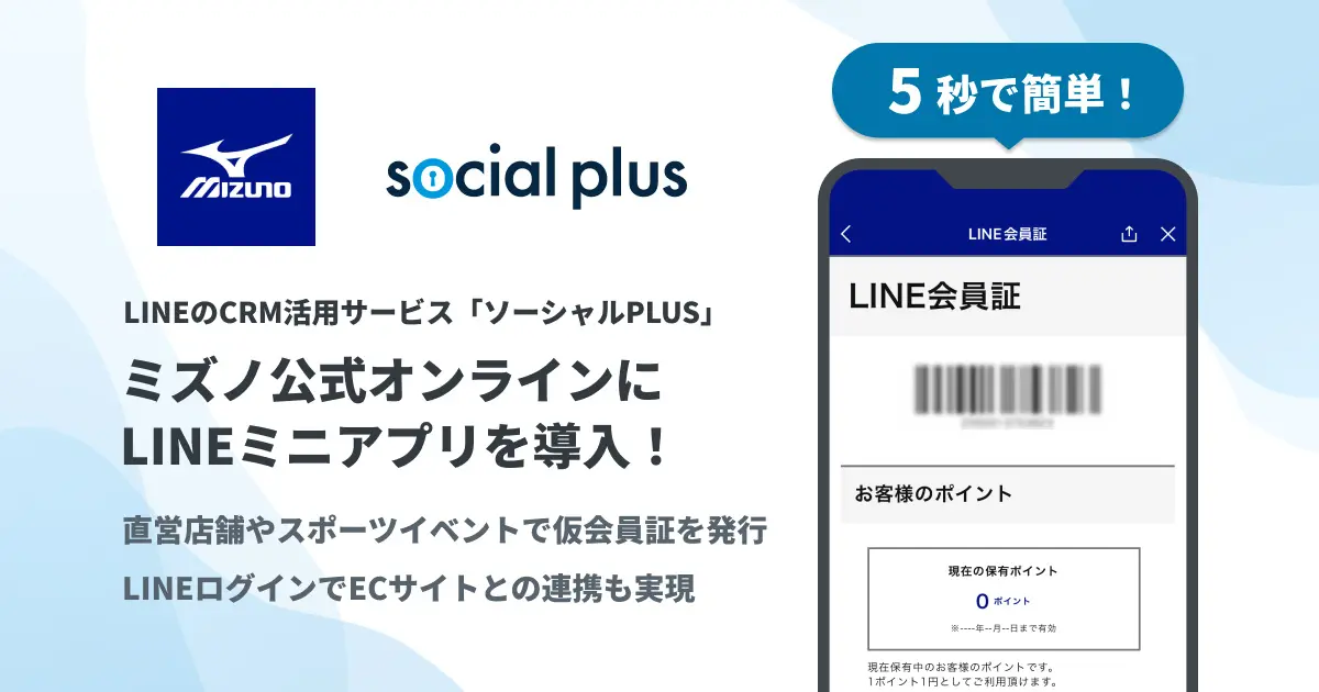 これらの課題に対して、「ミズノ公式オンライン」ではLINEミニアプリを活用した仮会員証の発行で、会員登録フローの簡略化と、CRM最適化のための情報連携を実現しています。