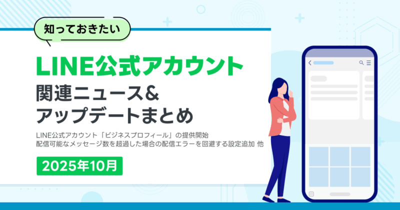 今月は、LINE公式アカウントのプロフィール画面を刷新した「ビジネスプロフィール」の提供開始や、「絞り込み配信時に配信可能なメッセージ数を超えていた場合の配信エラーを回避する設定追加」の予告などがございました。