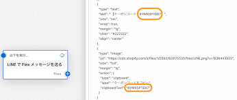 ▼クリップボード機能を設定したJSONコード例(画像内オレンジ枠がクーポンコード)