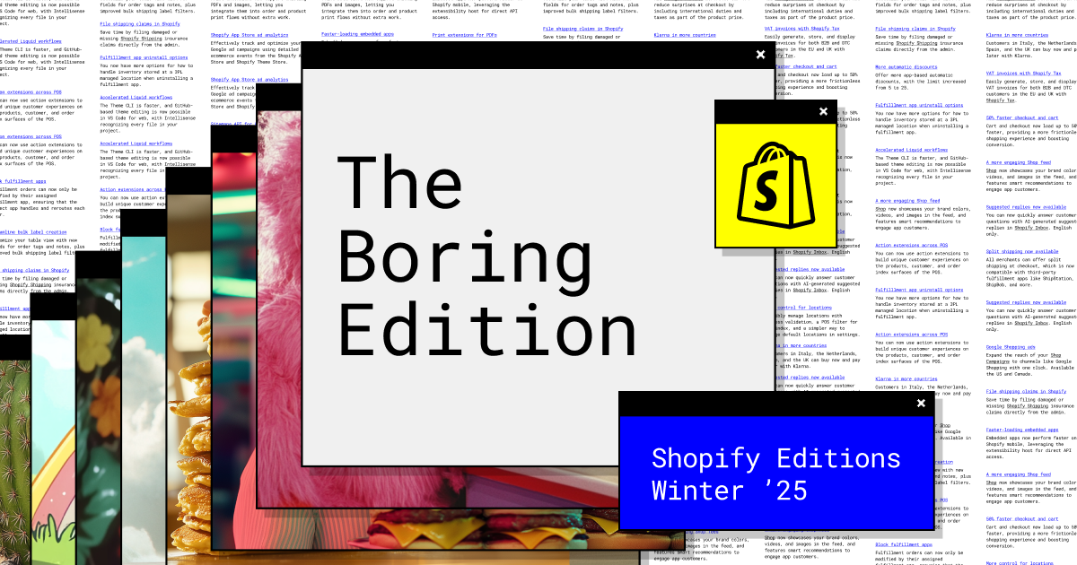 Shopifyが年2回、新機能やアップデートのまとめを発表するShopify Editions。今冬のWinter 2025が発表されました。今回も内容盛りだくさんで、150を超えるアップデートが含まれています。
